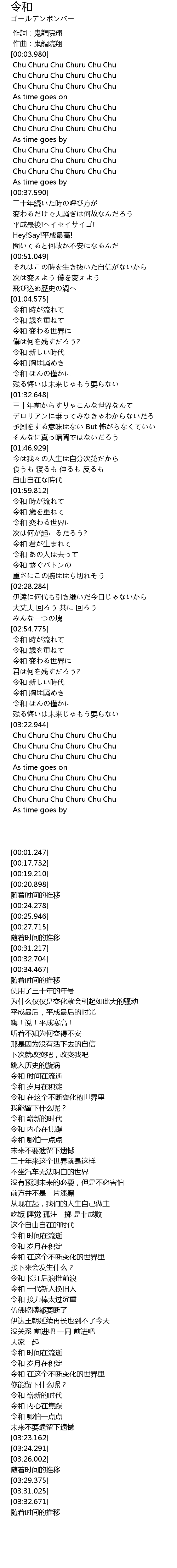 | [02:55.689] | 令和 时间在流逝 |