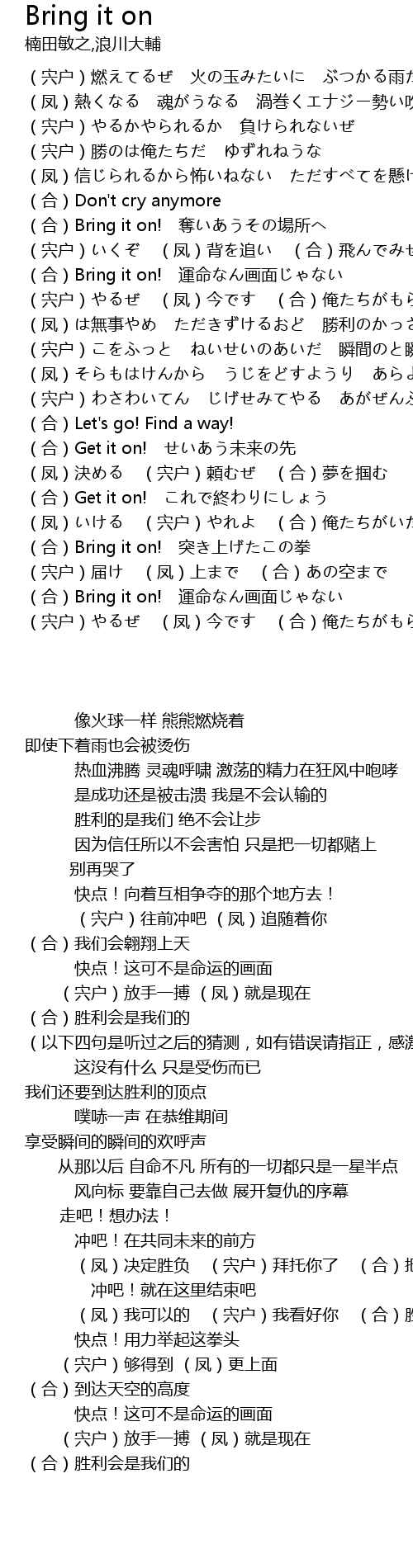 | [00:47:00] | (合)Bring it on! 奪いあうその場所へ |