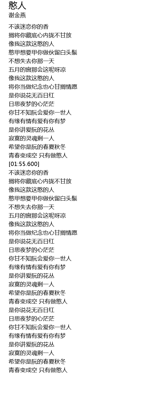 | [03:55.940] | 青春变成空 只有做憨人 |