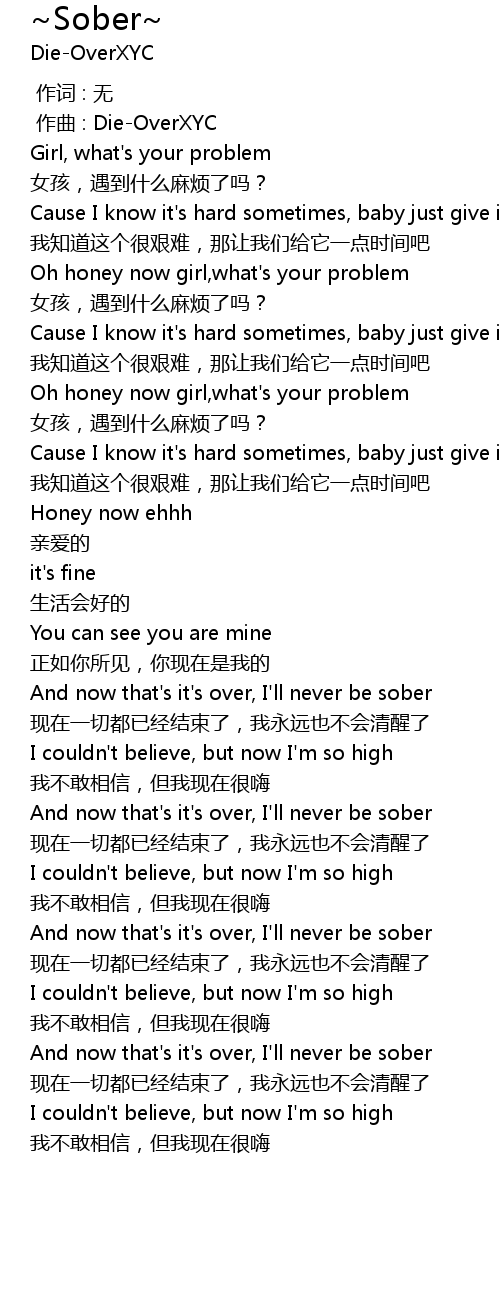 | [00:55.469] | And now that' s it' s over, I' ll never be sober |