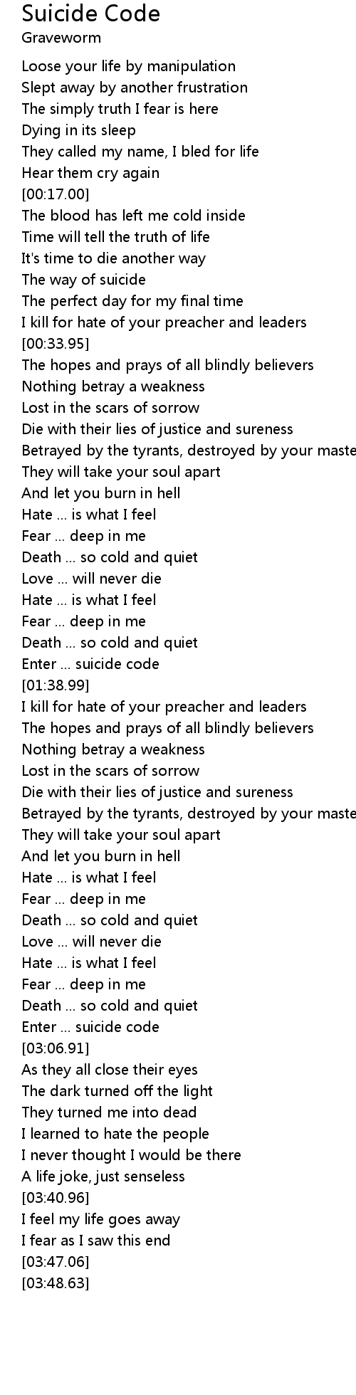 Enter ... suicide code |
