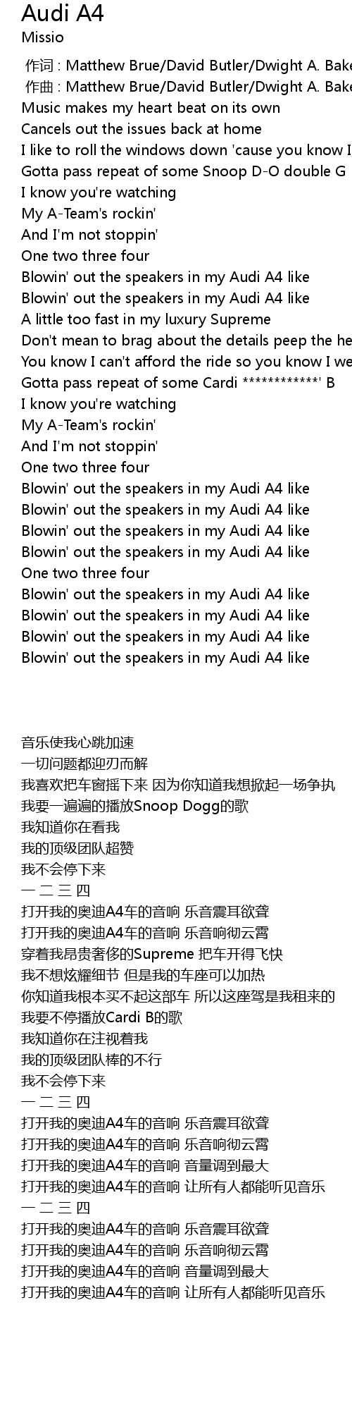 | 歌曲 | Audi A4 |