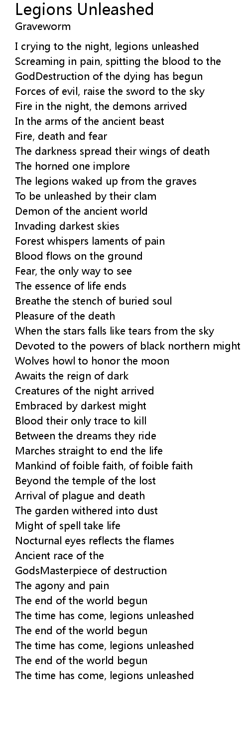 The time has come, legions unleashed |