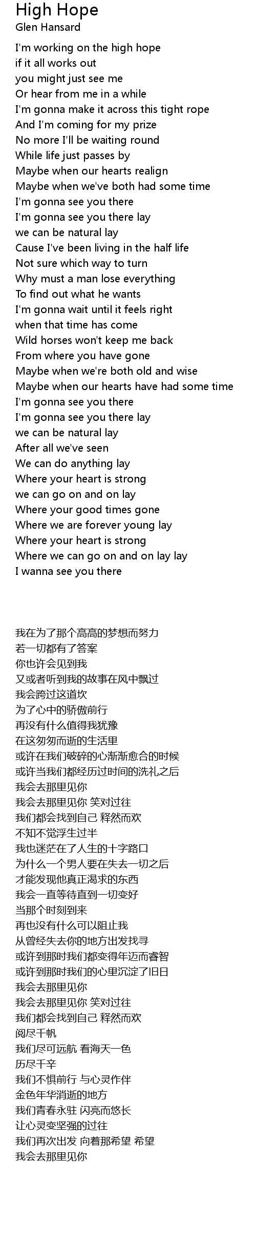 I'm working on the high hope |