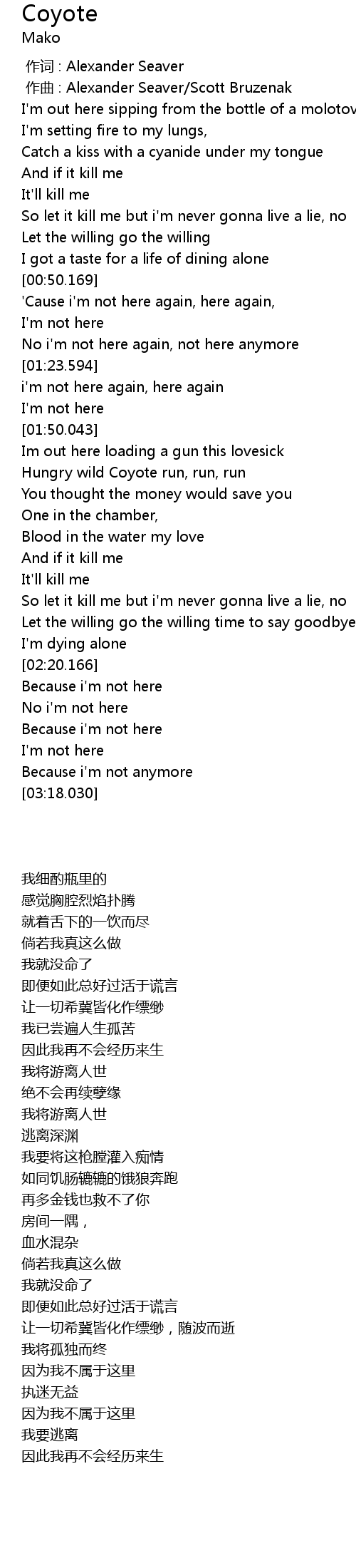 | [01:54.302] | Hungry wild Coyote run, run, run |