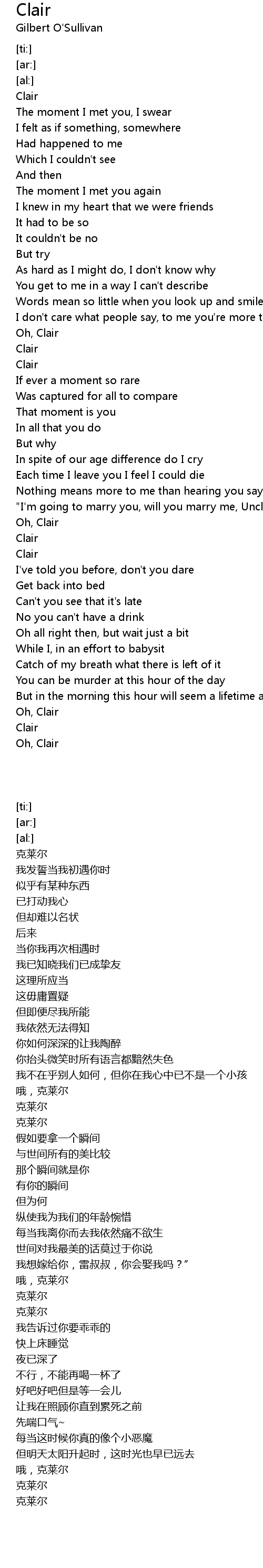| [01:37.75] | 我想嫁给你,雷叔叔,你会娶我吗?” |