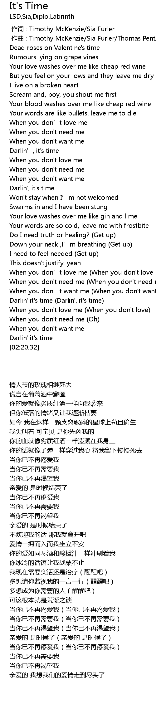 | [01:59.50] | 亲爱的 是时候了(亲爱的 是时候了) |
