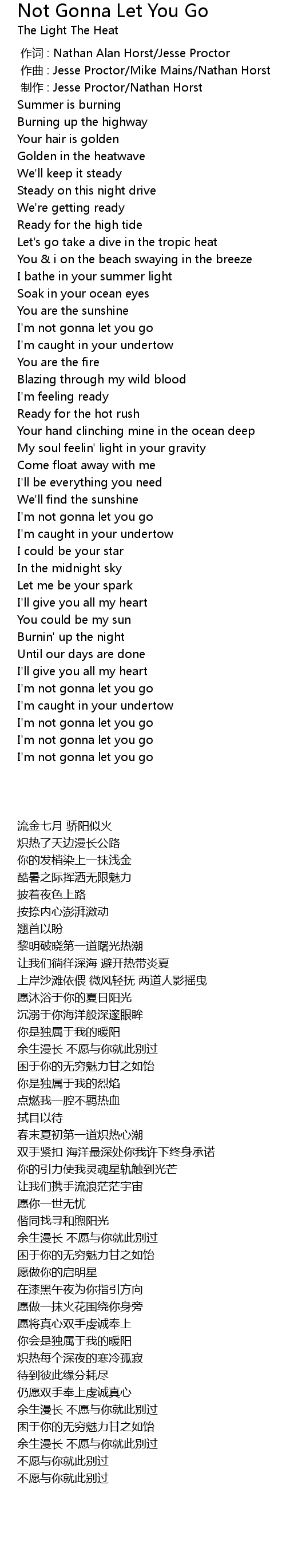 | 歌曲 | Not Gonna Let You Go |