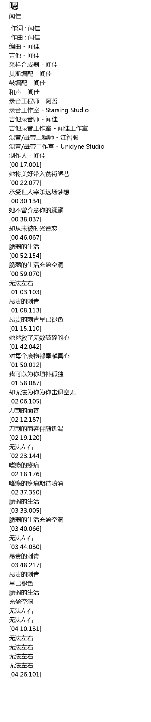 | [00:13.535] | 吉他录音工作室 - 闻佳工作室 |