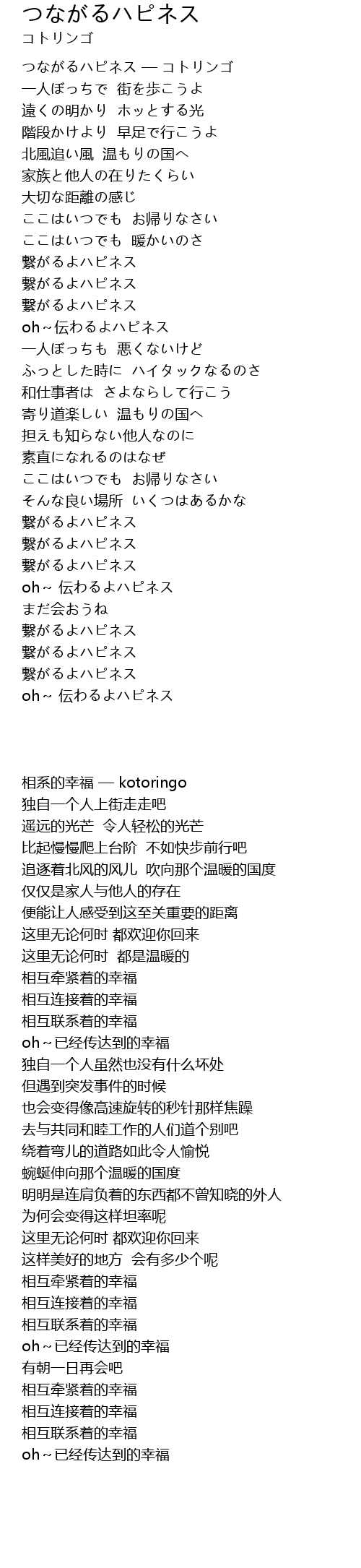 | [00:01.00] | つながるハピネス — コトリンゴ |