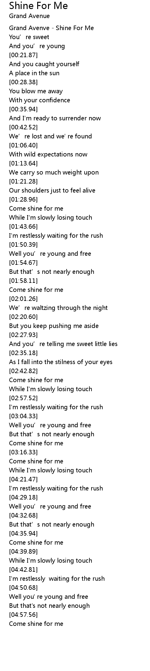 | [00:01.12] | Grand Avenve Shine For Me |