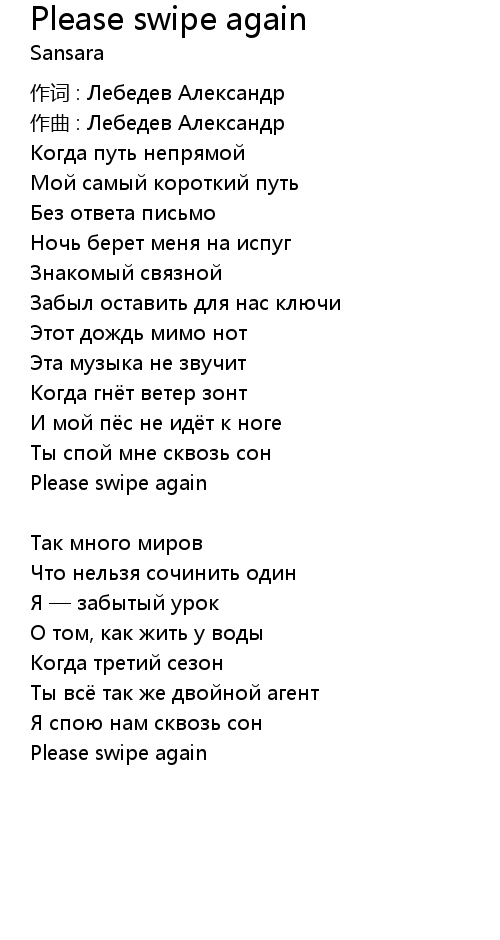 | 歌曲 | Please swipe again |