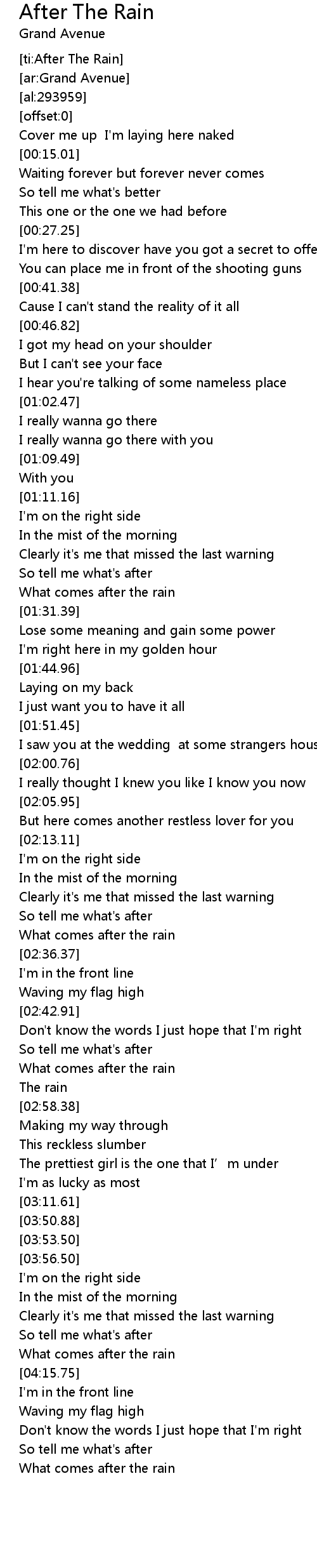 | [01:27.00] | What comes after the rain |