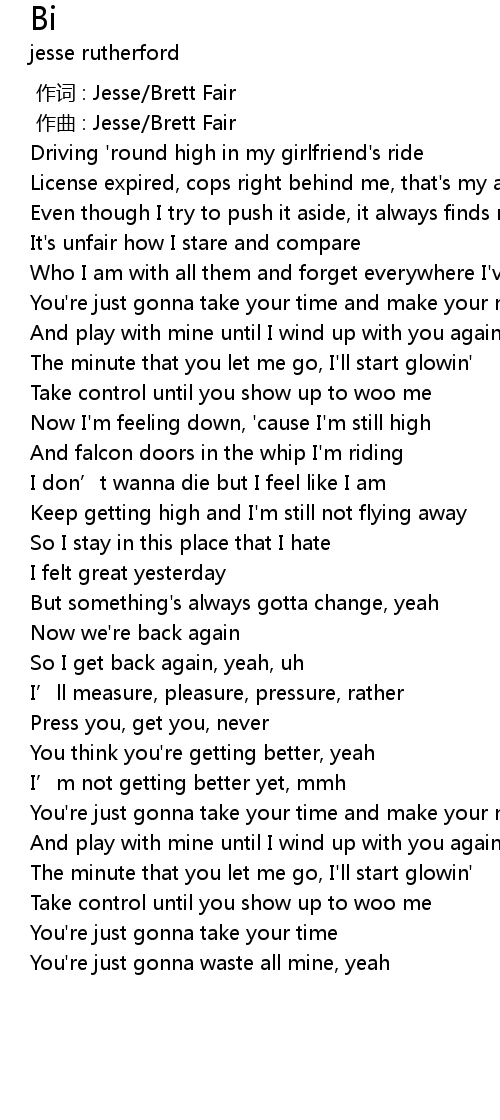 | [00:00.000] | 作词 : Jesse/Brett Fair |