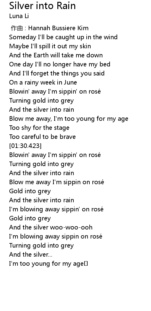 | [02:55.452] | And the silver into rain |