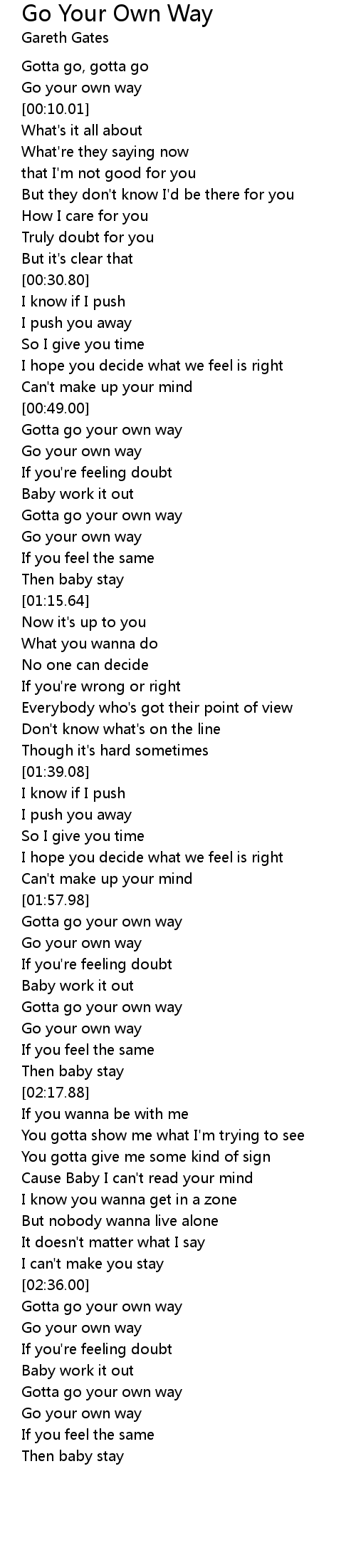 Gotta go your own way |