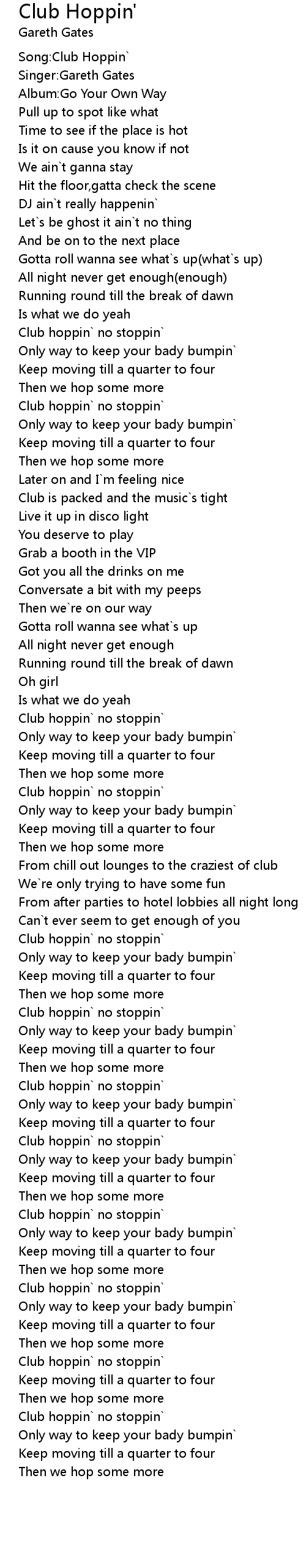 Song:Club Hoppin` |