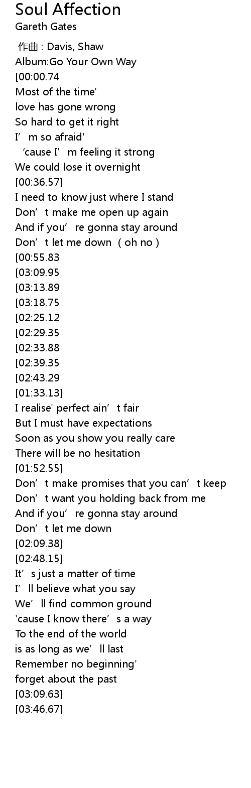 | [00:37.20] | I need to know just where I stand |