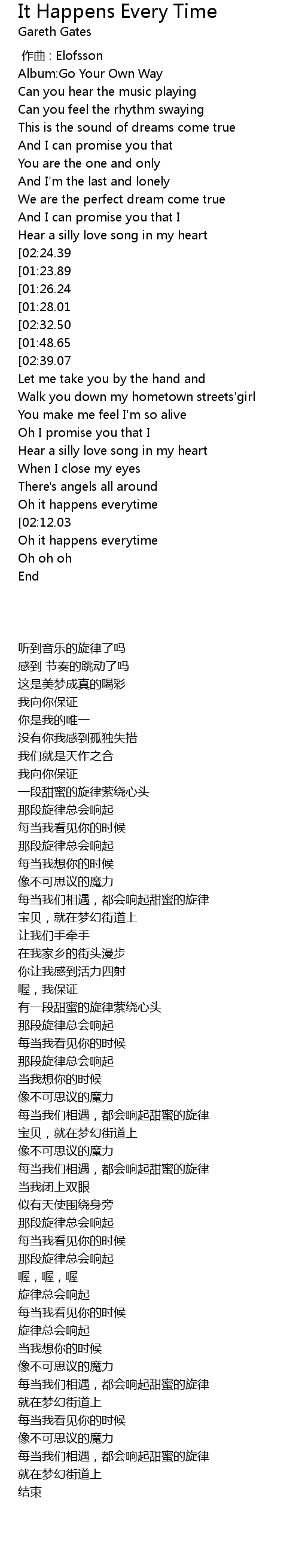 | [01:46.93][02:32.50][01:30.33][00:50.90] | It happens everytime |