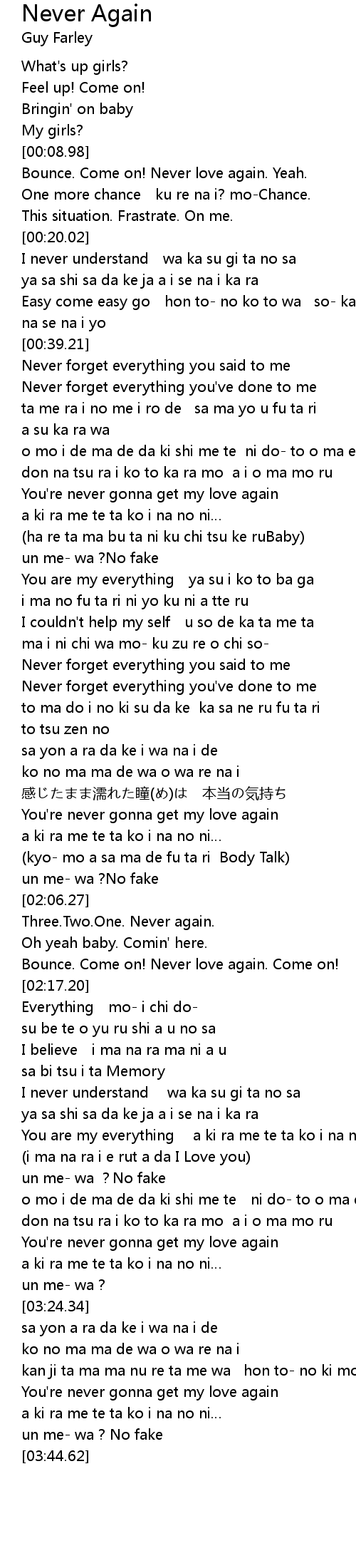 | [02:15.20] | Bounce. Come on! Never love again. Come on! |