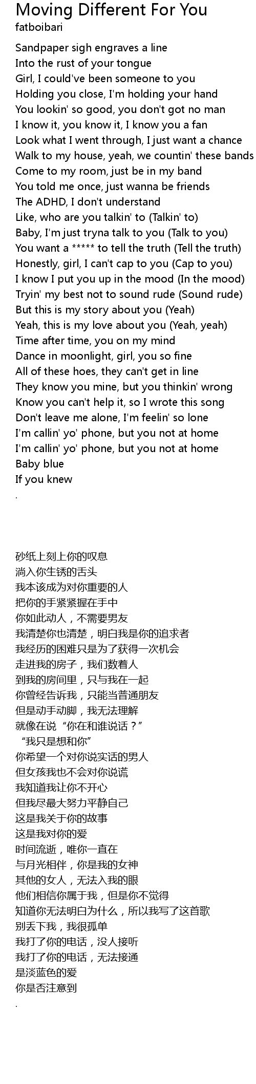 Moving Different For You 歌词