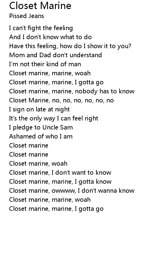 Closet marine, owwww, I don't wanna know |