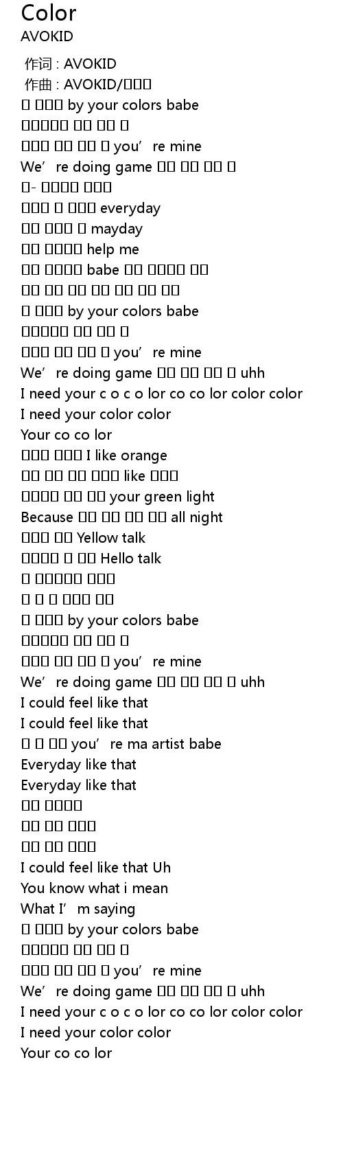 | [02:47.237] | I need your c o c o lor co co lor color color |