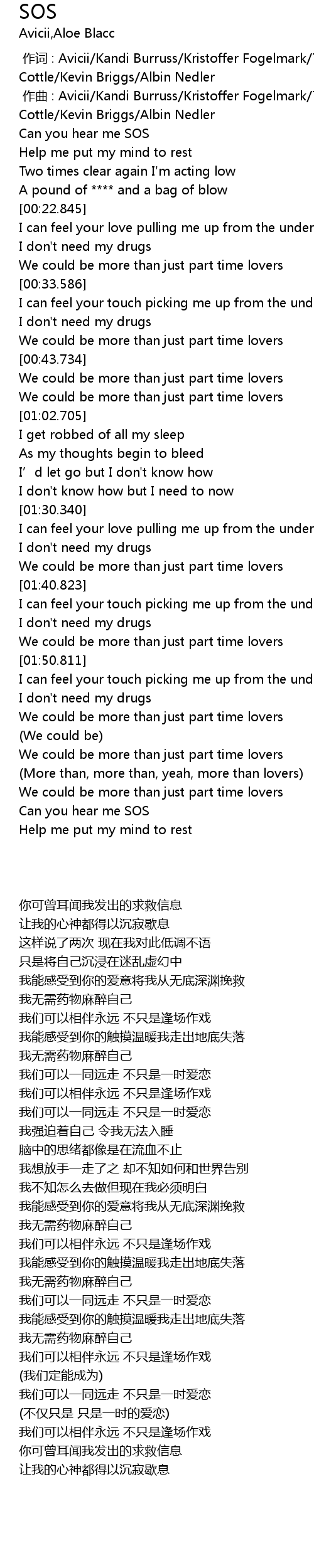 | [00:01.000] | zuo qu : Avicii Kandi Burruss Kristoffer Fogelmark Tameka Cottle Kevin Briggs Albin Nedler |