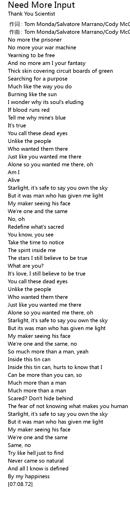 | 歌曲 | Need More Input |