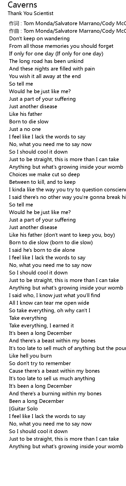 | [00:00.000] | 作词 : Tom Monda/Salvatore Marrano/Cody McCorry/Ben Karas |