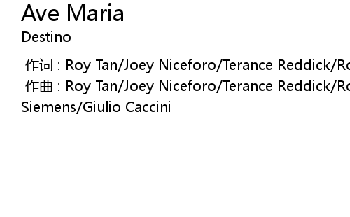 | [00:00.000] | 作曲 : Roy Tan/Joey Niceforo/Terance Reddick/Rosemary Siemens/Giulio Caccini |