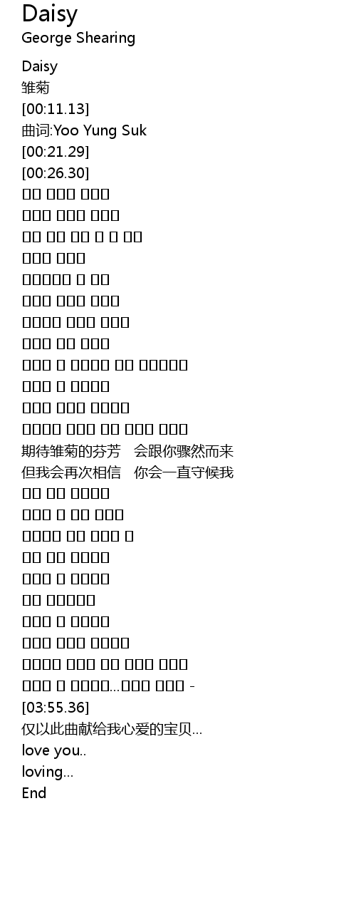 | [00:13.92] | 曲词:Yoo Yung Suk |