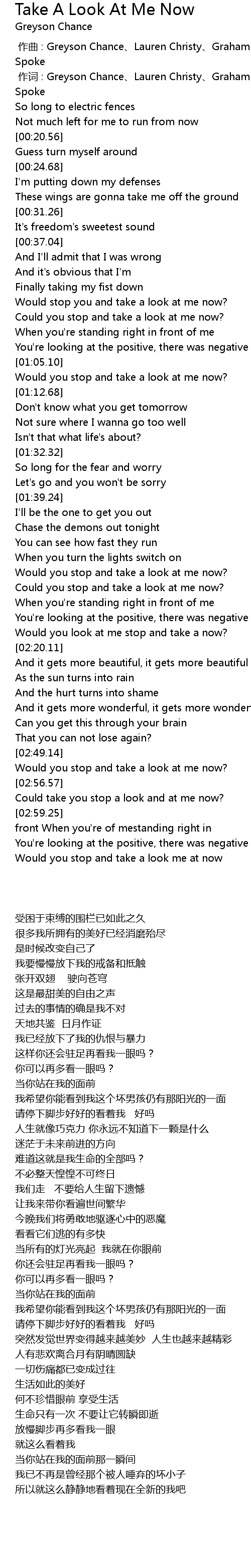 | [00:01.00] | zuò cí : Greyson Chance Lauren Christy Graham Edwards Scott Spoke |