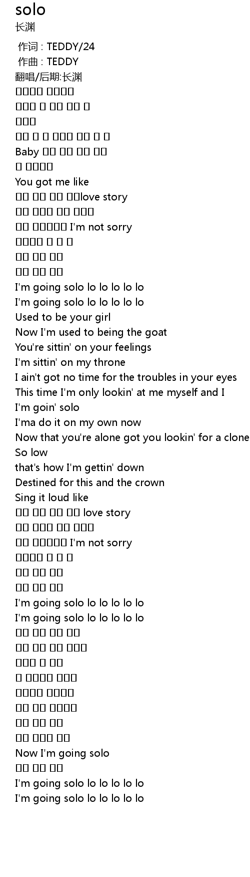 | [00:53.81] | I'm going solo lo lo lo lo lo |