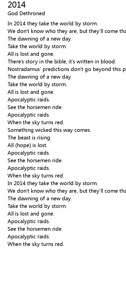 Nostradamus' predictions don't go beyond this point. 2014 |