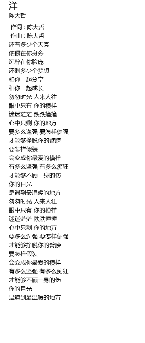 | [00:00.000] | 作词 : 陈大哲 |