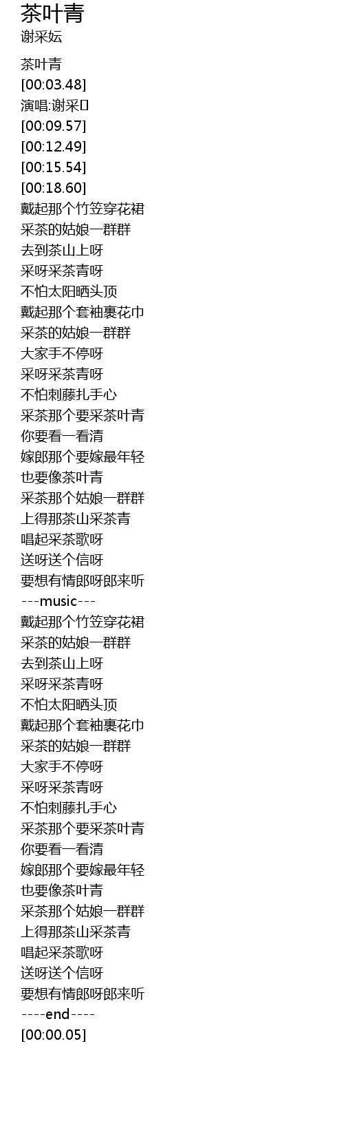 | [00:53.66] | 采茶那个要采茶叶青 |