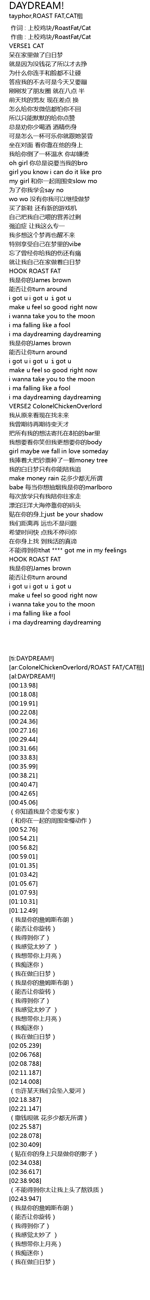| [00:01.000] | zuo qu : shang xiao ji kuai RoastFat Cat |