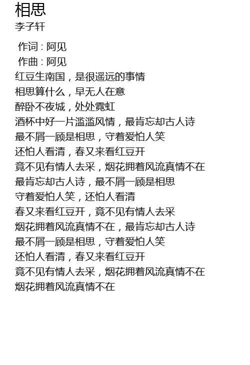 | [00:57.853] | 还怕人看清,春又来看红豆开 |