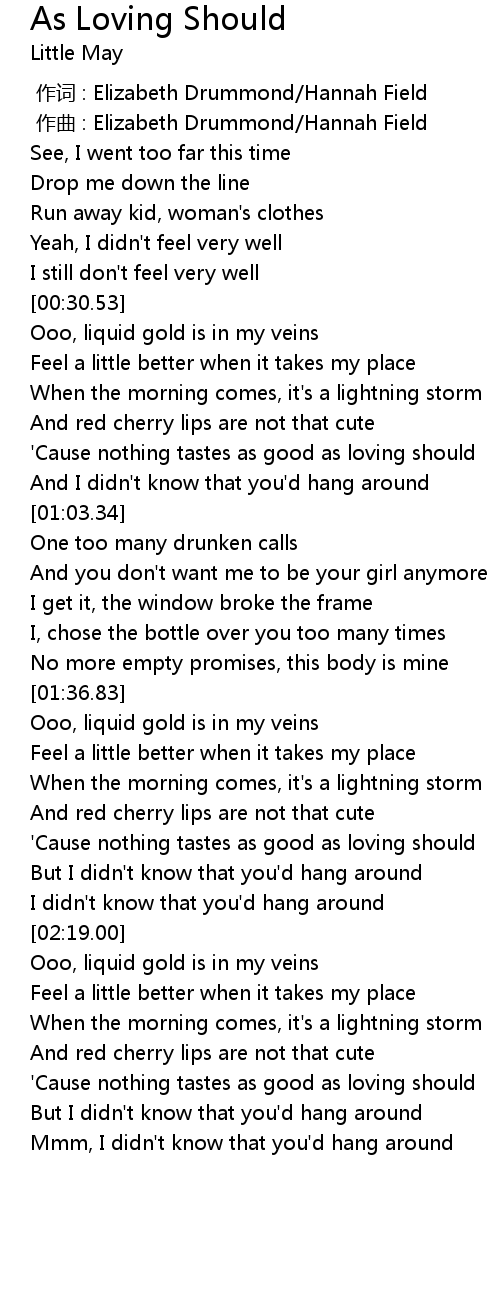 | [02:57.75] | 'Cause nothing tastes as good as loving should |