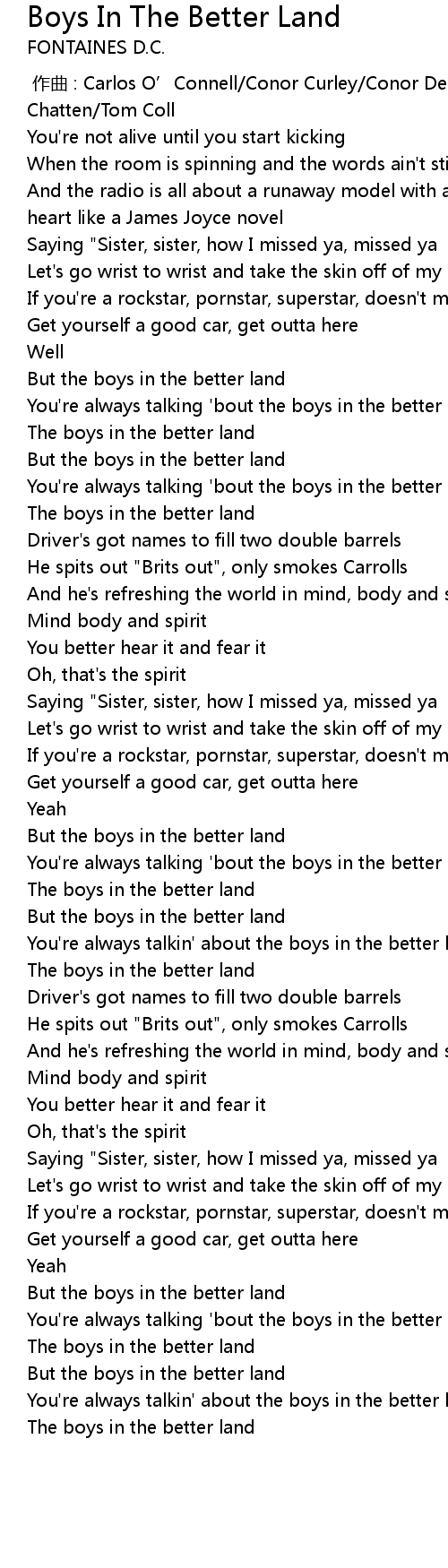 | [02:34.89] | You' re always talkin' about the boys in the better land |