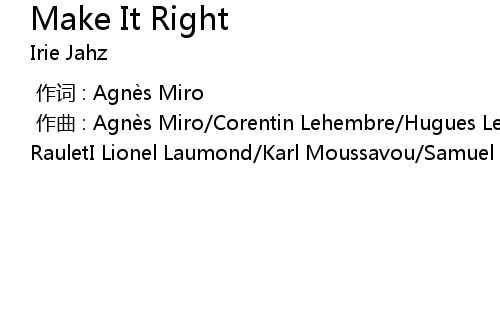 | [00:00.000] | 作曲 : Agnès Miro/Corentin Lehembre/Hugues Lehembre/Julien RauletI Lionel Laumond/Karl Moussavou/Samuel Lavignasse |