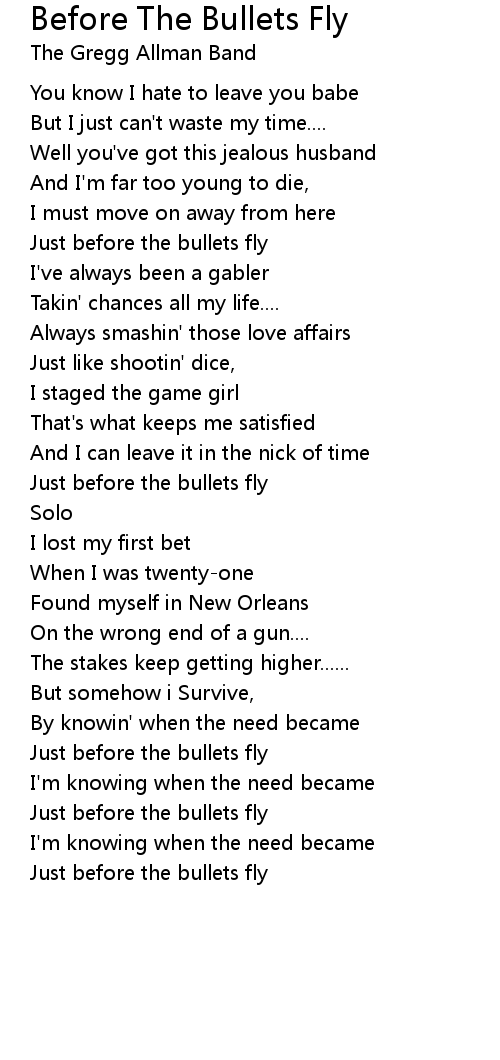 Before The Bullets Fly 歌词