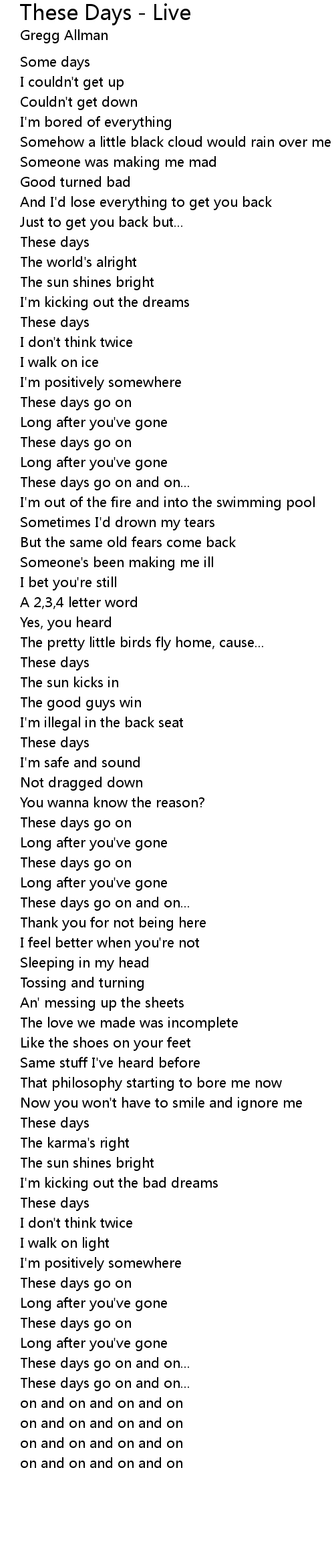 These Days - Live 歌词