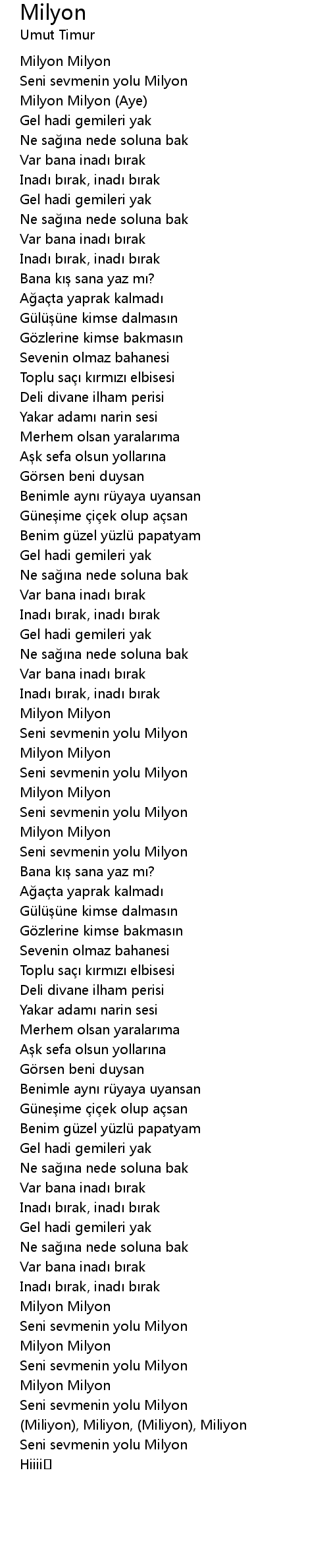 | [03:11.950] | Seni sevmenin yolu Milyon |