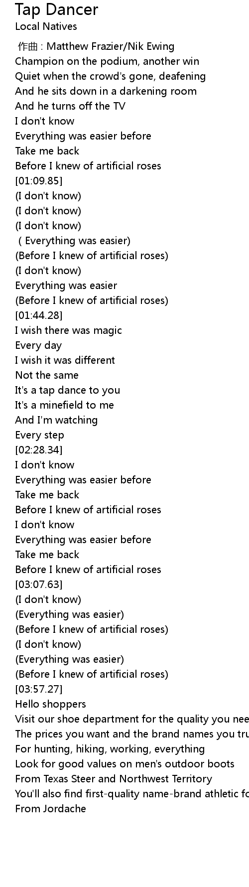 | [03:52.65] | Before I knew of artificial roses |