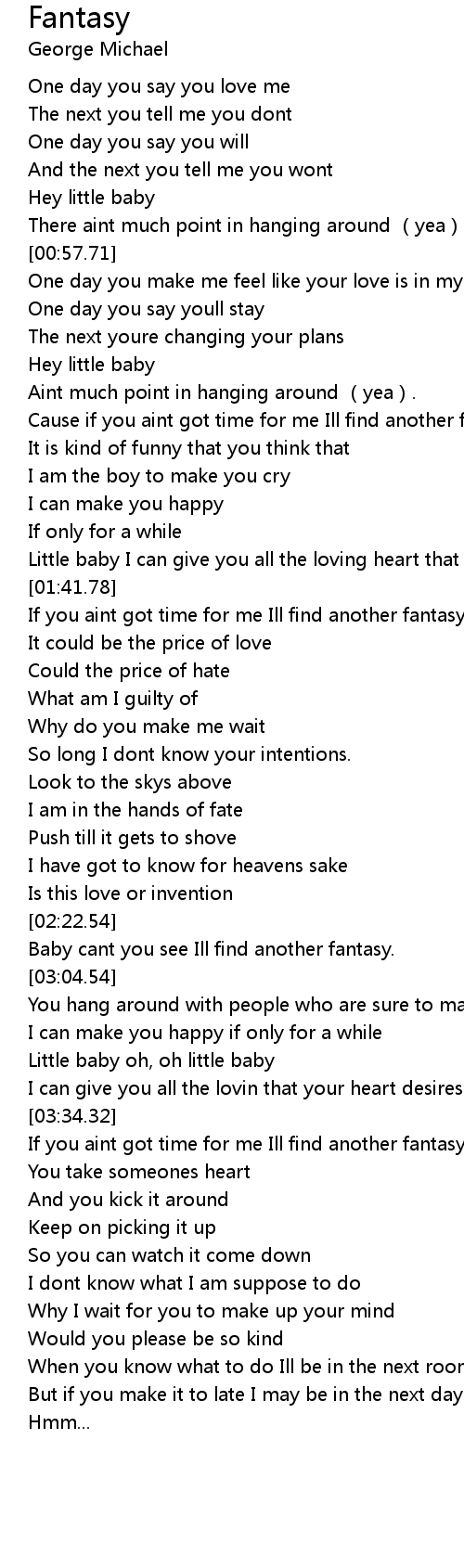 | [01:43.23] | If you aint got time for me Ill find another fantasy. |