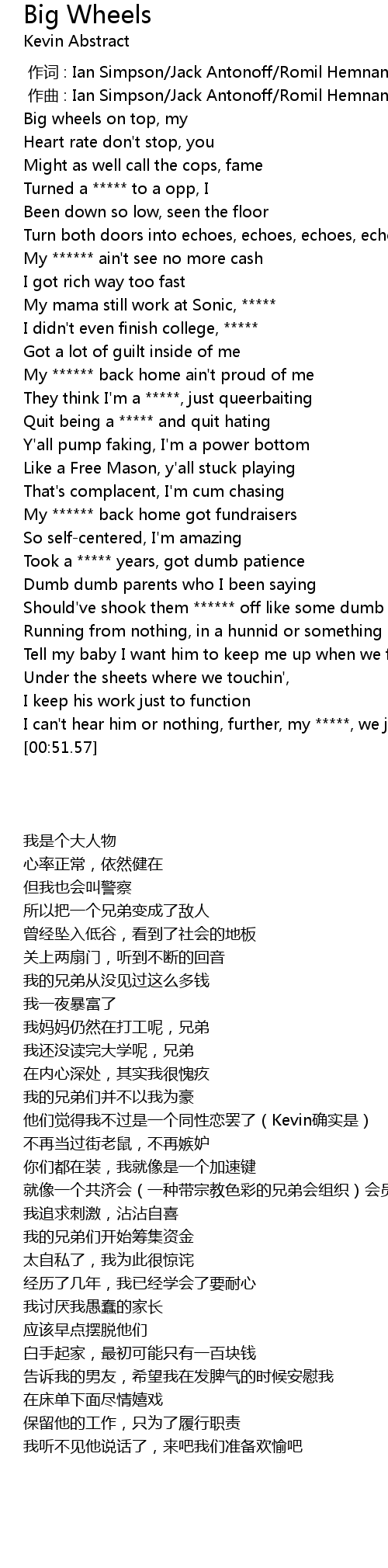 | [00:25.40] | They think I'm a *****, just queerbaiting |