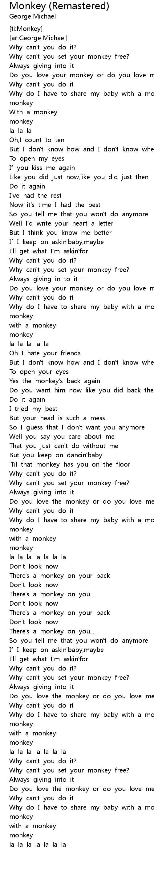 | [01:06.52] | Do you love your monkey or do you love me? |