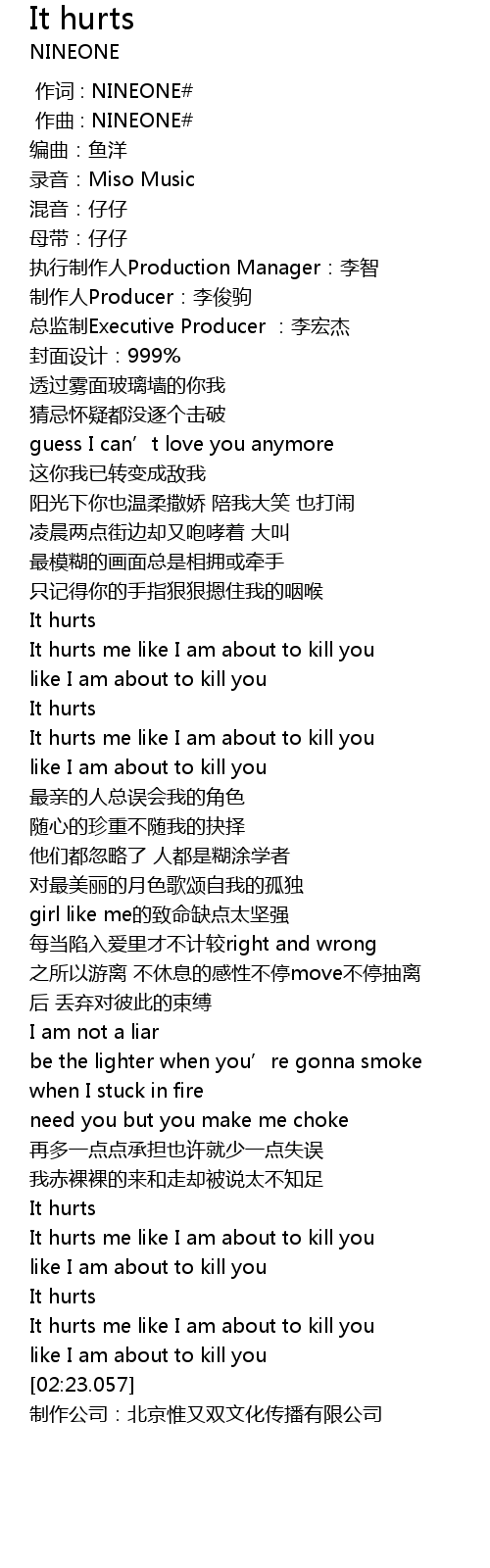 | [02:00.207] | It hurts me like I am about to kill you |